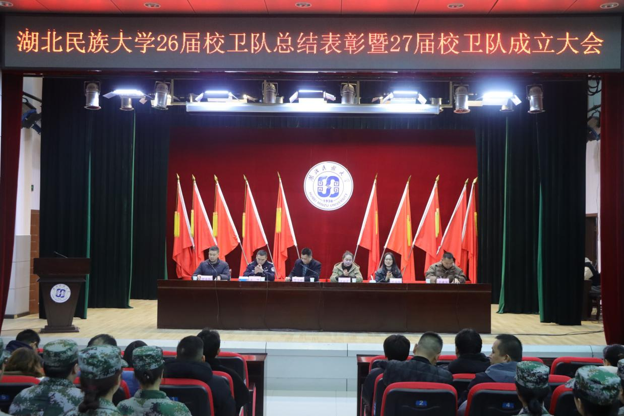 12月21日,雷竞技raybet登录入口第26届校卫队总结表彰暨第27届校卫队成立大会在行政楼一号会议室隆重举行。学校党委委员、学工部长方云霞,保卫工作部(武装部)部长周代明,驻校民警王烁,校团委副书记刘亚琼,保卫工作部(武装部)副部长李建华出席会议,与会的还有各学院学生科负责人,保卫工作部全体职工,以及学校各社团负责人。会议由保卫工作部(武装部)副部长何永红主持。