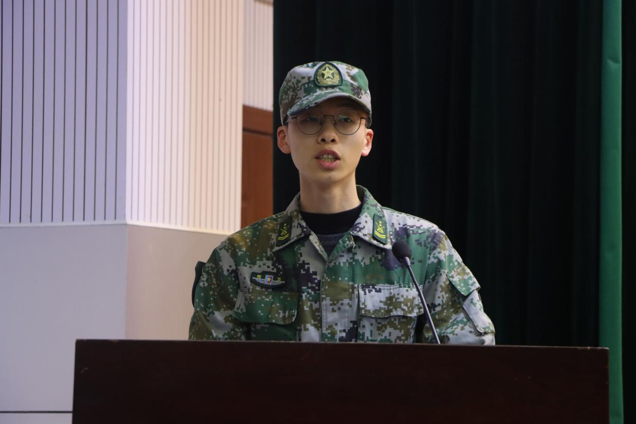 会议过程中,27届校卫队新队员徐长恩代表发言并做出承诺:我们将用行动践行“召之即来,来之即战,战之必胜”的队训,努力成为民大平安校园的守护者和践行者,不忘初心、牢记使命,用辛勤和汗水诠释校卫队的誓言。