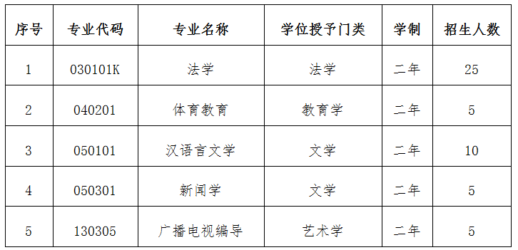 说明:根据考生报名情况,各专业招生人数可适当调整。