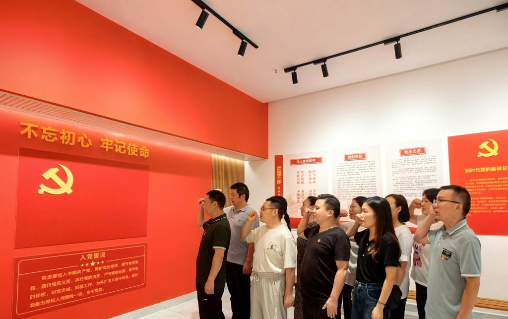 第三党支部书记官霞带领全体党员重温誓词,诵读党章,进行理论研学。随后,官霞结合学习体会和工作实际讲了纪律党课。支部还为6月份入党的党员李伟薇、汪义军同志赠送了政治生日卡。