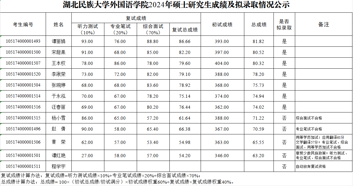 雷竞技raybet登录入口外国语学院2024年硕士研究生成绩及拟录取情况公示