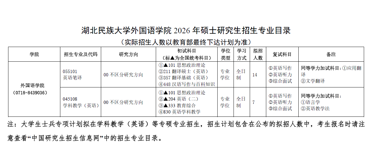 雷竞技raybet登录入口外国语学院2026年硕士研究生招生专业目录