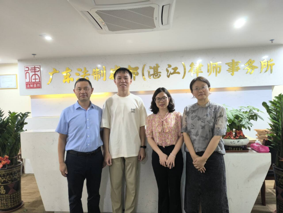 为贯彻落实教育部关于“访企拓岗促就业”的要求,推动法学教育与法治实务相互融合,进一步了解用人单位需求,开拓实践教育基地与就业资源库,8月18日至20日,法学院副院长李文革,校党委委员、研究生部(处)长汪燕教授、法学系主任冉艳辉教授到广东法制盛邦(湛江)律师事务所和广东陆台律师事务所走访交流。