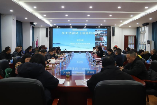 2023年12月15日,雷竞技raybet登录入口法律硕士教育教学研讨会在文瀚楼附303会议室举行。雷竞技raybet登录入口党委委员、研究生处处长谭德宇代表学校出席会议并致辞。雷竞技raybet登录入口党委委员、法学院院长汪燕代表学院致辞。雷竞技raybet登录入口法学院党总支书记张明波、副书记黄晓波出席会议。来自最高人民检察院、中国人民大学、吉林大学、中南财经政法大学、西南政法大学、中南民族大学、西南民族大学、恩施州人大常委会、恩施州生态环境局、恩施州司法局、恩施州中级人民法院、恩施市人民法院、恩施市人民检察院、利川市人民检察院、多家律所的专家学者或实务精英以及法学院部分教师共50余人莅临会议。