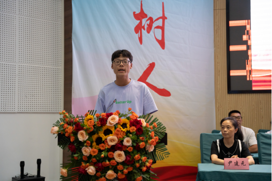 校友代表方勖平以自身奋斗经历,以《学会尝试 成就多彩人生》为题,从提升专业能力、提升综合能力、提升适应能力、提升创新能力、提升抗挫能力等五个方面分享了成长感悟。现场还播放了校友代表中国政法大学博士、广西大学法学院助理教授曹舒送来的祝福视频。随后老生代表20级本科生华雨萱、新生代表吕金凯作了发言。
