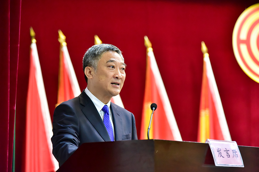 顿祖义代表学校向大会报告工作,他回顾了2022年工作,部署了2023年主要工作任务。