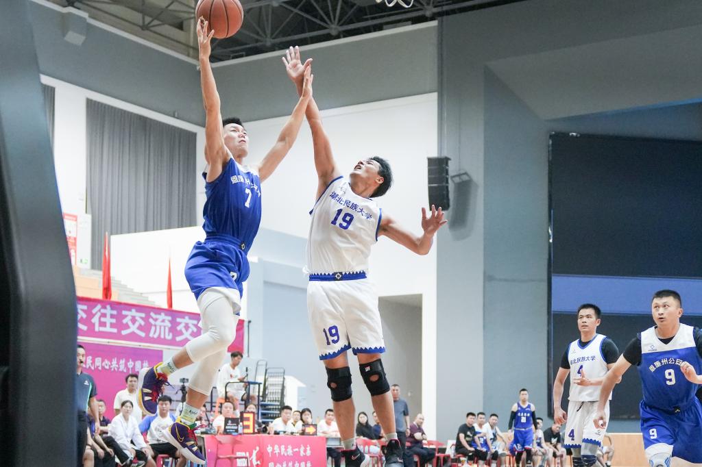 在学校领导的高度重视和安排部署下,由学校党委常委、统战部长田景福同志担任领队,体育学院牵头在全校范围内遴选教职工组队参赛;校工会和统战部等部门做好保障服务工作;学校各单位通力协作,组织师生到比赛现场为我校篮球队加油、通过网络投票为篮球队和远动员应援。赛场内外,所有民大人齐心协力、奋力拼搏,为了学校的荣誉而战,为了胜利的目标奋勇前行。