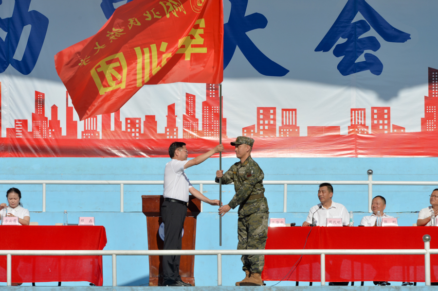 邓磊为军训团授旗