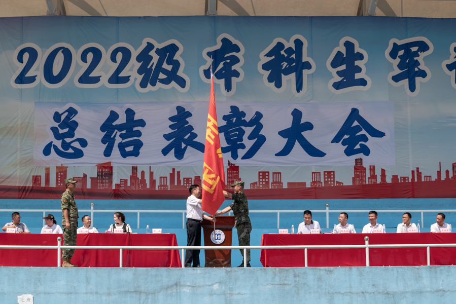 总结表彰大会上,吴华平通报军训成绩。学校党委宣传部副部长万力宣读2022级本科生军训团表彰文件,马克思主义学院、体育学院、法学院、教师教育学院荣获“标兵连”称号,音乐舞蹈学院、经济与管理学院、生物与食品工程学院、外国语学院、医学部、民族学与社会学学院获得“优秀连”称号,美术与设计学院、林学园艺学院、智能科学与工程学院、化学与环境工程学院、数学与统计学院、文学与传媒学院获得“优胜连”称号,徐德强等8位教官授予“优秀教官”称号,马锐等87名学员获得“优秀学员”称号。参会领导分别为受到表彰的学院、教官及学员颁奖。