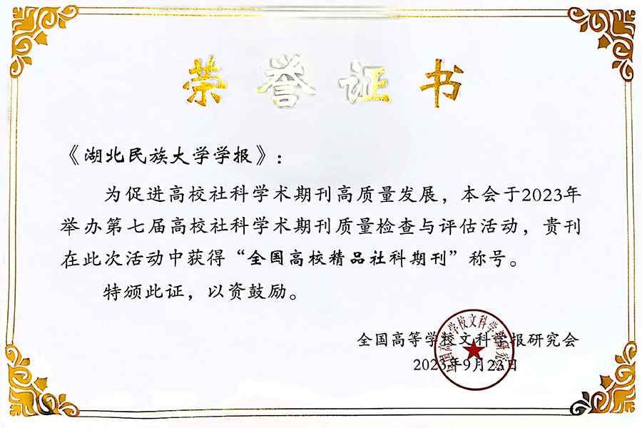 今年9月23日至24日,全国高等学校文科学报研究会九届三次理事会会议在湖北宜昌举行,会上公布了第七届高校社科学术期刊质量检查与评估结果,《雷竞技raybet登录入口(哲学社会科学版)》获评文科学报“全国高校精品社科期刊”称号。
