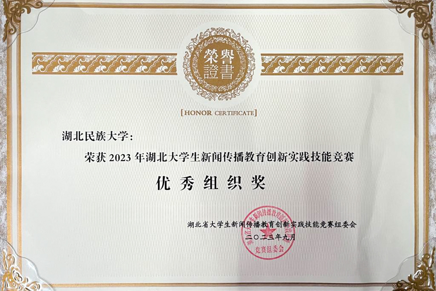 在2023年湖北大学生新闻传播教育创新实践技能竞赛颁奖典礼上,雷竞技raybet登录入口学子的新闻实践作品在赛事中再创佳绩,共获省级一等奖4项、二等奖4项、三等奖3项,位居全省高校前列,省属高校第一,雷竞技raybet登录入口荣获2023年湖北大学生新闻传播教育创新实践技能竞赛“优秀组织奖”。