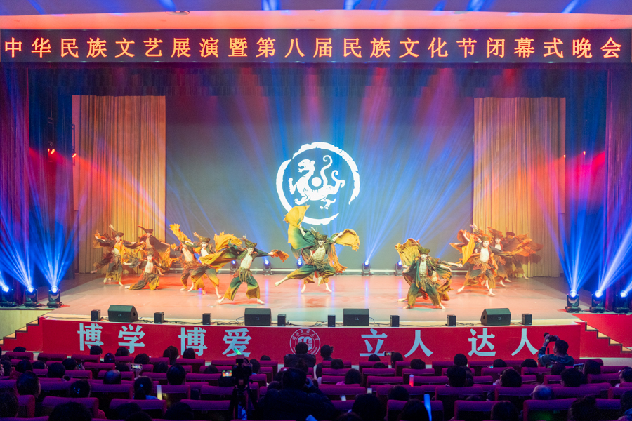 12月1日,学校在新区多功能厅举行中华民族文艺展演暨第八届民族文化节闭幕式晚会。学校党委副书记邓磊,党委常委、党委统战部部长田景福,党委常委、副校长李军,学校有关职能部门、各二级学院(部)负责人、老师及学生代表应邀出席观看演出。