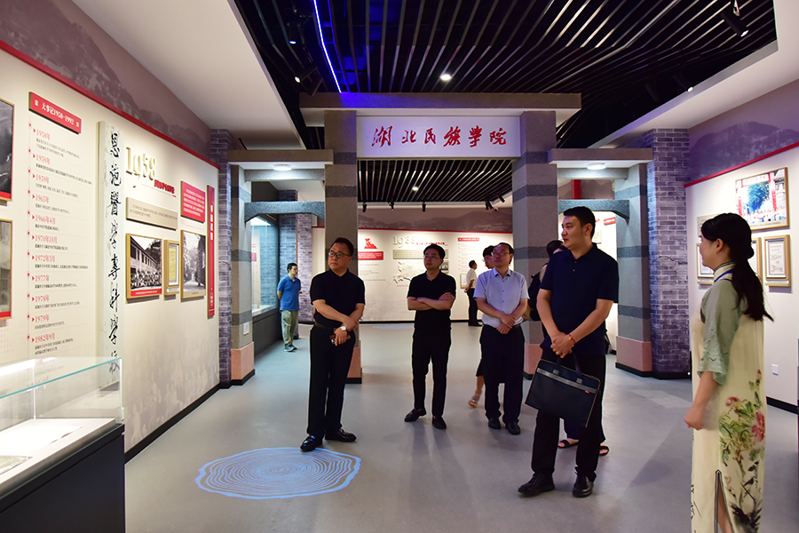 调研组首先来到雷竞技raybet登录入口展览中心,详细了解了学校的办学历史与奋进历程。在校史陈列厅,跟随讲解员回顾了学校建校以来的发展足迹。在办学成果展示厅,调研组听取了学校在人才培养、科学研究与社会服务、文化传承等方面的成果介绍,并展望了学校未来的发展蓝图。随后,在修远楼,调研组考察了铸牢中华民族共同体意识学习园地,并听取了学校“红石榴”“一加一加一”民族文化建设和普及等相关工作的汇报。