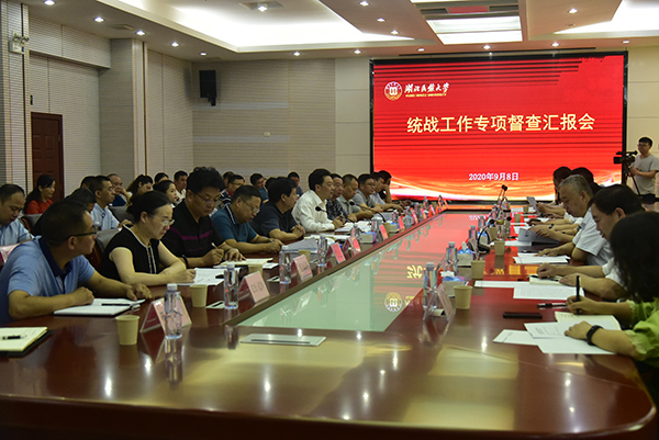 学校在行政楼三楼3号会议室召开统战工作专项督查汇报会。党委书记吴建清、副校长秦群燕、州政协副主席谭建军、何义发出席会议,学校统一战线领导小组成员单位负责人,党外代表人士参加会议。汇报会由党委副书记、副校长汪兴平主持。