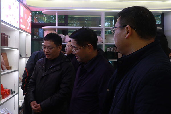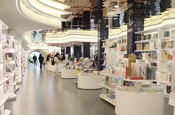 邓磊(中)参观书店文创产品区