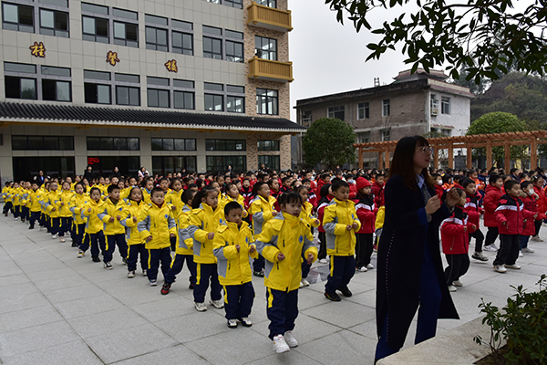 揭牌仪式结束后,邓磊一行观看了民大附小师生“幸福附小健康操”展演,并参观了校园。