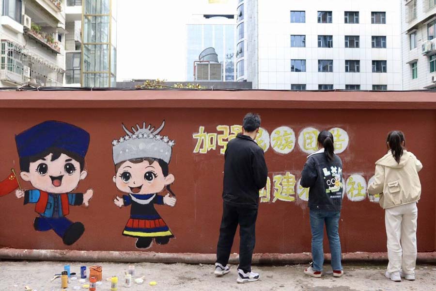 林学园艺学院志愿者在大桥路社区开展艺术墙绘