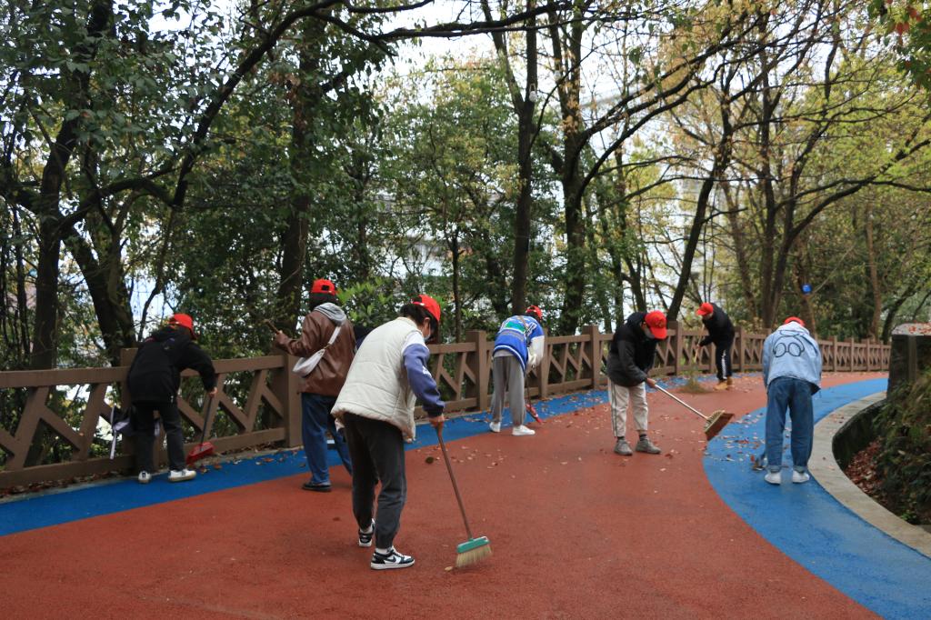 志愿者清扫落叶(通讯员 方迪/摄)