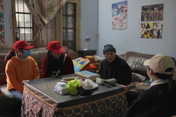 志愿者与老人交流(通讯员 熊新/摄)