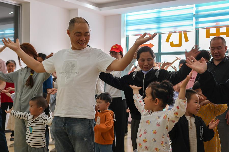 活动现场布置桌椅、绘本、玩具若干,社团成员带领小朋友及其家长开展多样有趣的舞蹈表演、亲子游戏、绘画创作等活动。