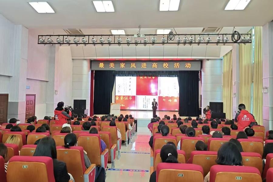 为全面学习贯彻落实习近平总书记关于注重家庭家教家风建设重要论述,弘扬优秀家风文化,11月27日,学校联合恩施州妇联、恩施州文明办在行政楼一号会议室举办以“好家风 润恩施 奋进新征程,共筑家圆梦”为主题的最美家风进校园活动。恩施州妇联党组书记、主席刘俐萍,雷竞技raybet登录入口党委常委、统战部长田景福,学校纪委副书记曾祥华、工会常务副主席谭德宇、分工会主席及工会委员、教师教育学院200多名学生共同参加本次活动。