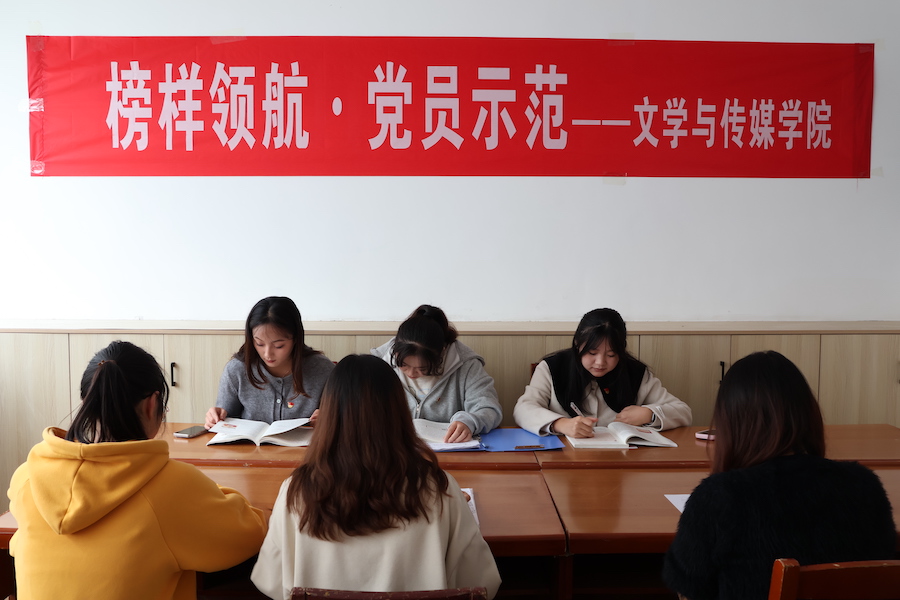 11月14日,文学与传媒学院在博爱十栋党员活动室、博学五栋自习室举办以“榜样领航,党员示范”为主题的党员学业帮扶活动。文学与传媒学院中共预备党员彭菡、陈德琴等在博爱十栋党员活动室进行主讲,阿斯哈提别克·塔巴热克、邓正锋等在博学五栋自习室进行主讲。文学与传媒学院部分本科生参加本次活动。