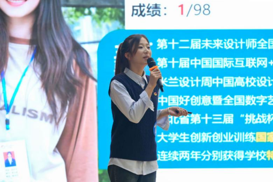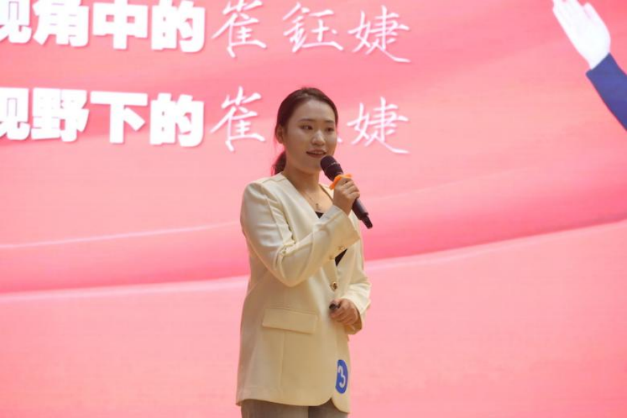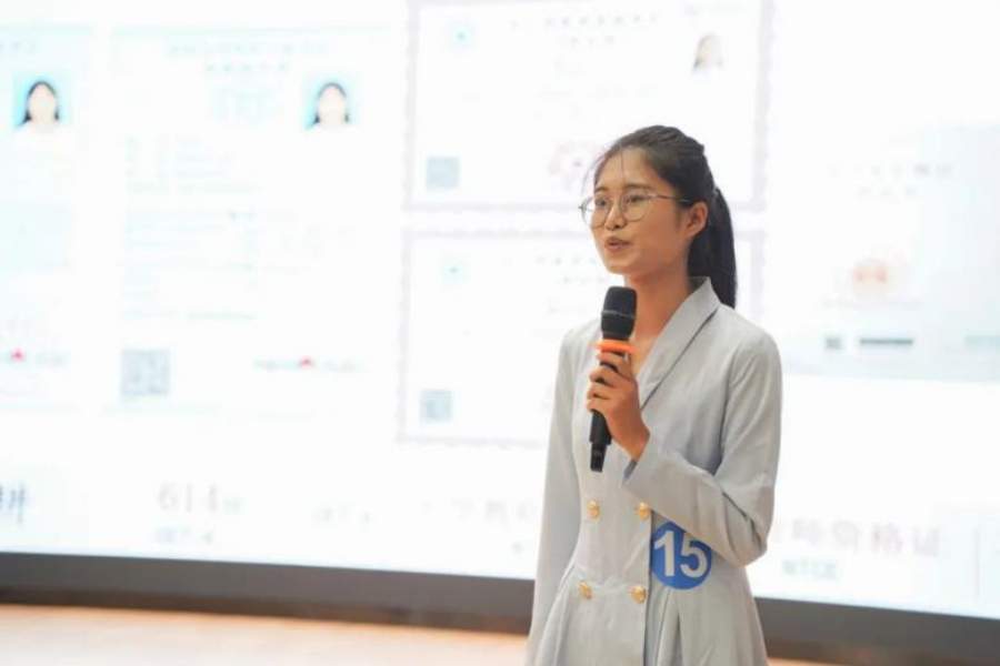 教师教育学院十五号选手王佳雯以讲课的形式介绍她成为“四有教师”的奋斗历程。2023年12月跨年之际她登上全国师范生顶级赛事的领奖台,并在省级师范生赛事、英语省级赛事、全国首届职业规划大赛中不断探求,目前获国家级、省级、市级奖项5项,市级以下荣誉57项。今日之课,是为她在民大永不下课的一堂“精神之课”。