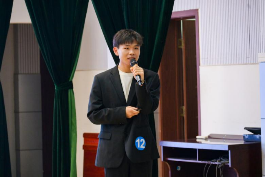文学与传媒学院十二号选手邓正锋以立德、立学、立人、立身四个方面介绍自己向阳而生的故事。在奋力开花的路上他收获国家级奖项1项,省、市级奖项18项,其中担任学校重点培养项目负责人率领团队夺得“互联网+”大赛国赛铜奖。在未来的道路上他仍会坚持“苔花如米小,也学牡丹开”的座右铭,砥砺前行、矢志不渝。