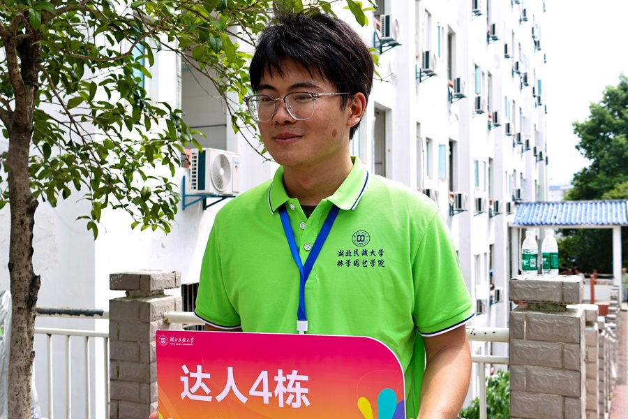 林学园艺学院学生刘天宝自清晨七点起便乐此不疲地服务于新生之间,即便烈日炎炎,汗水浸湿了衣襟,他仍笑对新生,那份因助人而生的喜悦溢于言表。他人的帮助与学校助学金的温暖让他心怀感恩,他将以真挚的心与实际行动回馈学校,传递正能量。