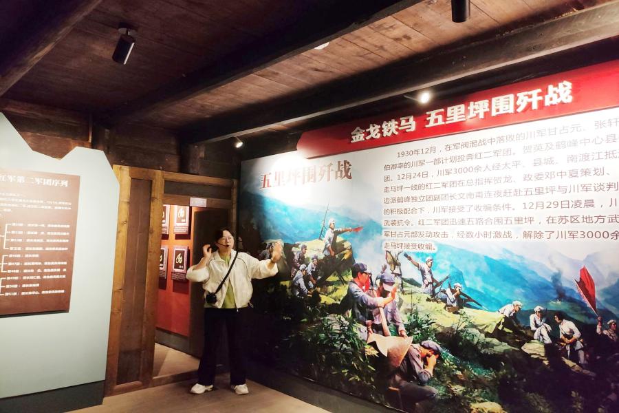 鹤峰队由教师刘磊、杨春彩、万俊带领,前往五里乡五里村湘鄂边苏区五里坪革命旧址、政治生活馆、红军老街。在五里坪革命旧址,解说员向师生详细介绍湘鄂西武装割据历史和总策源地湘鄂边苏区的代表性遗存,讲述了以贺龙同志为代表的中国共产党人,在这里创建党的组织、苏维埃政权和工农武装,发展壮大红军队伍的英勇事迹。随后,带队老师和学生参观了红军老街,领悟精神品格,缅怀革命先烈。