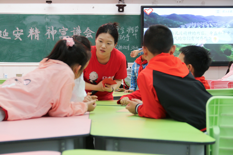 5月7日,志愿宣讲团队前往恩施市实验小学开展首次宣讲活动。本次宣讲在恩施市实验小学302班开展,以“让延安精神彰显出新的时代韵章”为主题,用质朴的话语、新颖的方式,结合延安时期的南泥湾开荒、毛泽东的菜园等故事,层层分析、步步推进,讲述了伟大的延安精神、共产党人的革命理想与情怀,充分展现了共产党人的初心与使命。在此过程,团队成员带领学生共同学习“艰苦奋斗,自力更生”的深刻内涵,并引导学生们要发扬“艰苦奋斗,自力更生”的精神,做有理想、敢担当、能吃苦、肯奋斗的新时代好青年。