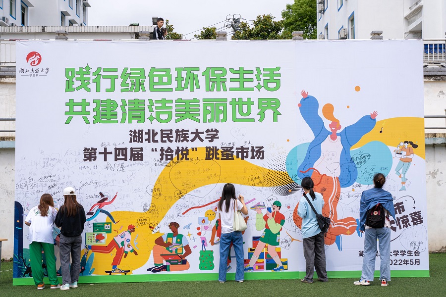 5月29日,我校在民族体育场举办以“践行绿色环保生活,共建清洁美丽世界”为主题的第十四届“拾悦”跳蚤市场活动。