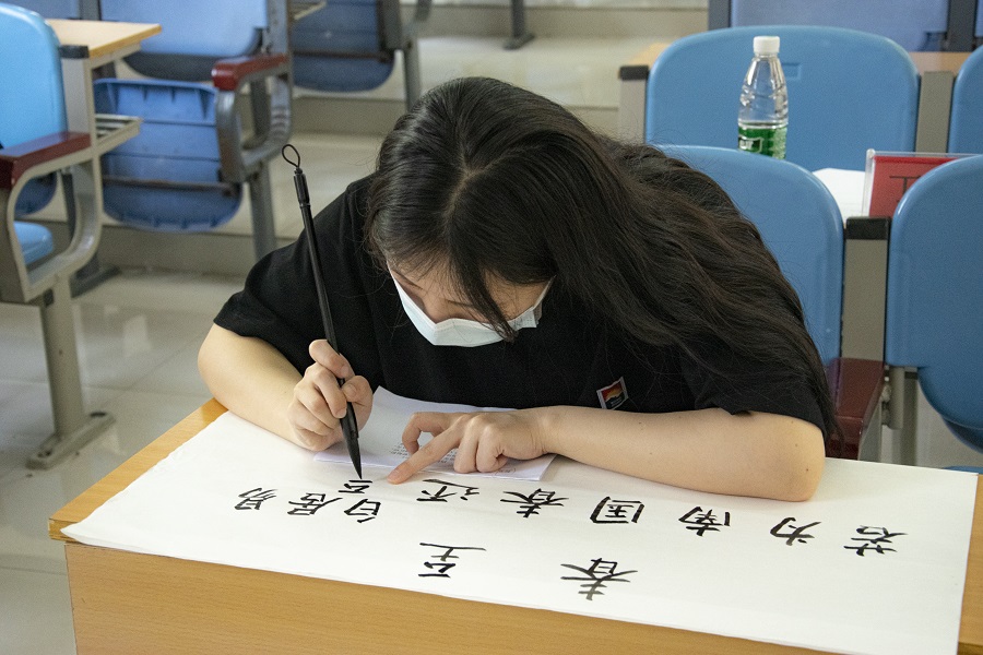 学生正在写毛笔字