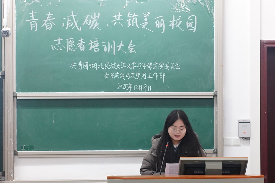 12月9日,共青团雷竞技raybet登录入口文学与传媒学院委员会社会实践与志愿者工作部在修远楼5A101教室开展以“青春减碳·共筑美丽校园”为主题的志愿者培训。