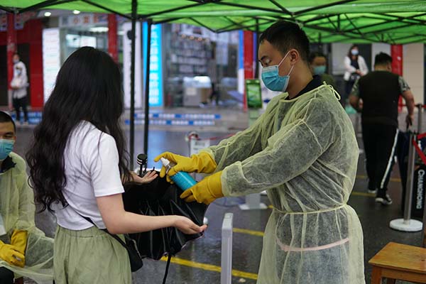 火车站接待点在校门口再次消毒在学院报到点核查返校登记表本网讯(记者 吴佳乐 张雅婷 )6月21日,我校迎来首批符合疫情防控要求的毕业生返校。为确保毕业生返校工作安全有序进行,学校在火车站设立了接待点,同学们下火车后通过核验健康码、测量体温、行李消毒等环节,换乘大巴,到校门口后再进行二次核查,然后乘坐校园观光车到各学院报到点报到。在各学院报到点,辅导员再次核查学生返校登记表,并为毕业生们发放防疫礼包和...