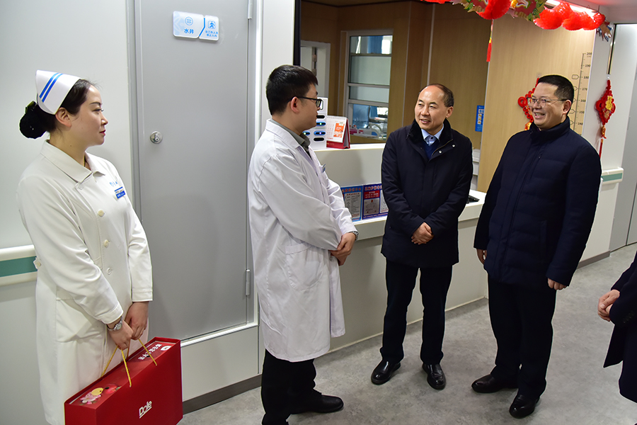 “过年好!大家辛苦了,给大家拜年了!”2月9日,大年除夕,学校党委常委、副校长李军来到附属民大医院,看望慰问春节期间仍然坚守在一线工作岗位的医护人员,代表学校向他们致以真诚的感谢和新春的祝福。李军一行先后来到心血管内科、小儿内科,为节日值守医护人员送上慰问品,并代表学校对他们在春节期间履职尽责、辛勤工作表示感谢。李军详细询问了医院春节期间值班值守、医疗接诊、后勤保障等情况,强调必须确保春节期间医...