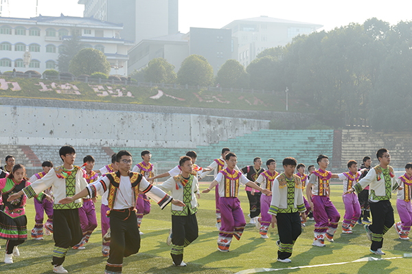 开幕式现场民族团结操比赛现场民族团结操比赛现场本网讯(通讯员 tw)11月15日上午,我校第六届民族文化节开幕式暨民族团结健身操比赛在民族体育场举行,学校统战部常务副部长丁莉、校团委书记方云霞、恩施职业技术学院团委书记别振宇、党委宣传部副部长万力、学工处副处长李建华、体育学院党总支副书记何斌、音乐舞蹈学院副院长焦娜、校团委副书记吴珊出席活动并担任评委,开幕式由校团委副书记谢晖主持。学校团委书记方云霞宣...