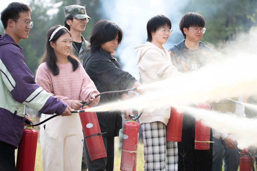 10月21日,学校组织2023级新生在东苑食堂外一楼广场和空地开展消防安全演练活动,2023级学生参与安全消防演练。学生操作灭火器本次消防演练活动分为灭火器灭火操作演练、消防水带演练、应急疏散演练三个环节。灭火器灭火操作演练环节,恩施州消防特警大队消防员王建翔为学生详细讲解干粉灭火器的正确使用方法、灭火器在火灾初期阶段的扑救方法以及柴堆灭火的注意事项。参加学生亲手使用灭火器进行实践操作,以此来加深对于灭火...