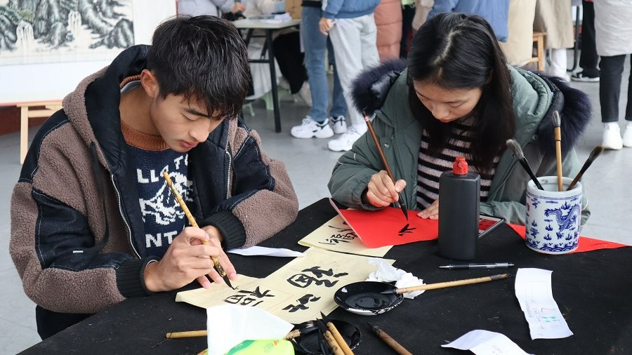 活动现场(通讯员 林玟/摄)“福倒了”环节(见习记者 何晓庸/摄)学生挂福字(通讯员 吴满意/摄)12月11日,兰亭书苑在大学生广场举办以“墨洒暖阳,畅飞梦想”为主题的特色活动,全校学生踊跃参与。活动现场分设四个游戏区和一个汇总区,包含“书法知识竞答”“福倒了”“雅歌投壶”“寄愿祈福”四个环节,吸引众多学生参与其中。“书法知识竞答”环节,学生对五道书法知识题目进行作答,题目涉及书法发展史、诗词理解、基本...