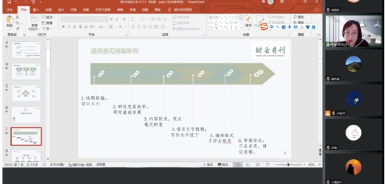 第一阶段:由《财会月刊》执行主编张瑾进行“会计论文选题与撰写——学术期刊编辑视角”的讲座。张瑾以《财会月刊》为例介绍期刊论文的基本情况,并从选题方法、写作技巧以及论文格式规范等方面对学生进行全方位的指导;张瑾介绍《财会月刊》的期刊定位、特色、影响力等,并从编辑和审稿人的角度向学生诠释“选题是文章的方向与根本、观点是文章的灵魂”;同时,张瑾围绕论文撰写中的“四要”(论文选题、思想、逻辑、规范)、“四不要”(学术伦理、歧途、互动、雷区)详细讲解,并结合学生提出的如何寻找“创新点”“破题”等问题进行指导。