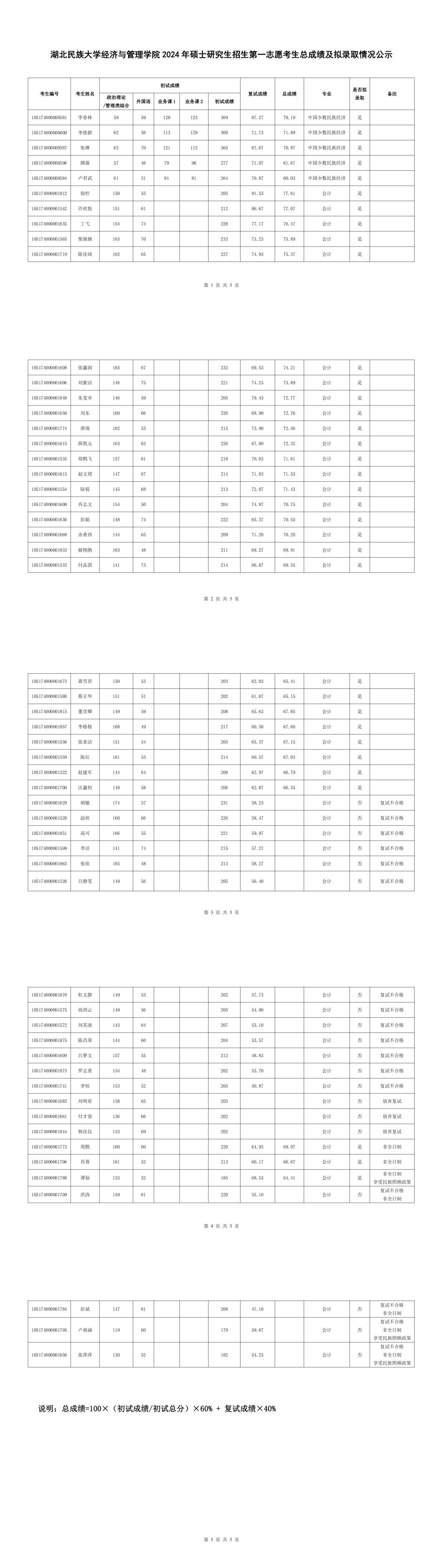 : 经济与管理学院2024年硕士研究生第一志愿考生进入复试人员名单公示