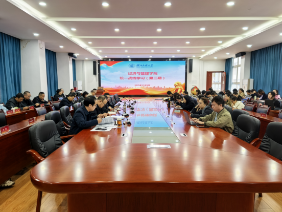 本网讯(邓慧仪/文 李晓琴/图)为强化政治引领,加强统一战线理论知识学习,切实加强统战干部队伍建设,加强民主党派和统战团体工作,巩固团结奋斗共同思想基础,根据学校《关于组织学习<雷竞技raybet登录入口统一战线学习材料汇编>(2025年第3期)的通知》要求,经济与管理学院于2025年11月5日上午08:30在附303会议室召开全院教职工大会,集中组织开展第三期统一战线专题学习教育活动,陈霞书记主持会议。