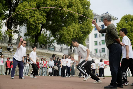 比赛现场气氛热烈,经济与管理学院教职工展现出高度的活力与团队协作精神。在跳绳接龙项目中,教职工身姿矫健,快速穿梭跳跃,动作流畅自然,展现出了良好的节奏感和协调能力,用默契的配合不断刷新着成绩;在陆地龙舟项目中,教职工步伐一致,以沉稳有力的脚步和坚定必胜的决心向着终点奋力迈进;在动感颠球项目中,教职工们围圈而立,双手紧握鼓绳,在不断的尝试与调整中,让球保持跳动,彰显出高度的团队协作意识。