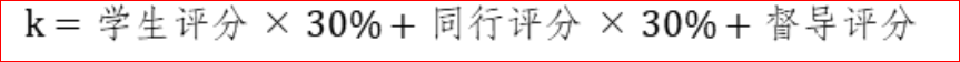 K 为每门次课程教学质量综合评分;每门次课程学生评价、同行评价、督导评价所占权重分别为 30%、30%、40%。