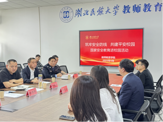 本网讯(通讯员 尼沙)为深入贯彻落实总体国家安全观,增强师生国家安全意识,4月15日下午,雷竞技raybet登录入口教师教育学院联合学校保卫处、地方公安局共同举办“筑牢安全防线 共建平安校园”国家安全教育进校园活动。活动在德智楼9A505会议室举行,出席活动的有雷竞技raybet登录入口保卫处副处长李建华、恩施州公安局大队长向红艳、恩施市公安局大队长陈泽权、恩施市公安局舞阳坝派出所副所长王烁、雷竞技raybet登录入口保卫处政保科科长徐拥军、教师教育学院辅导员尼沙以及40多名学生代表。活动由教师教育学院副院长邱世兵主持。