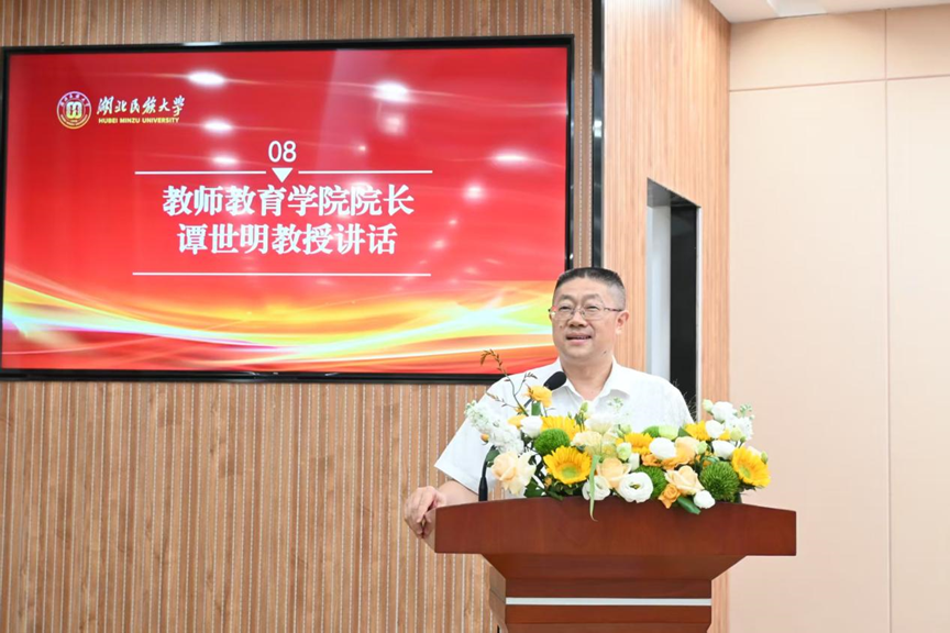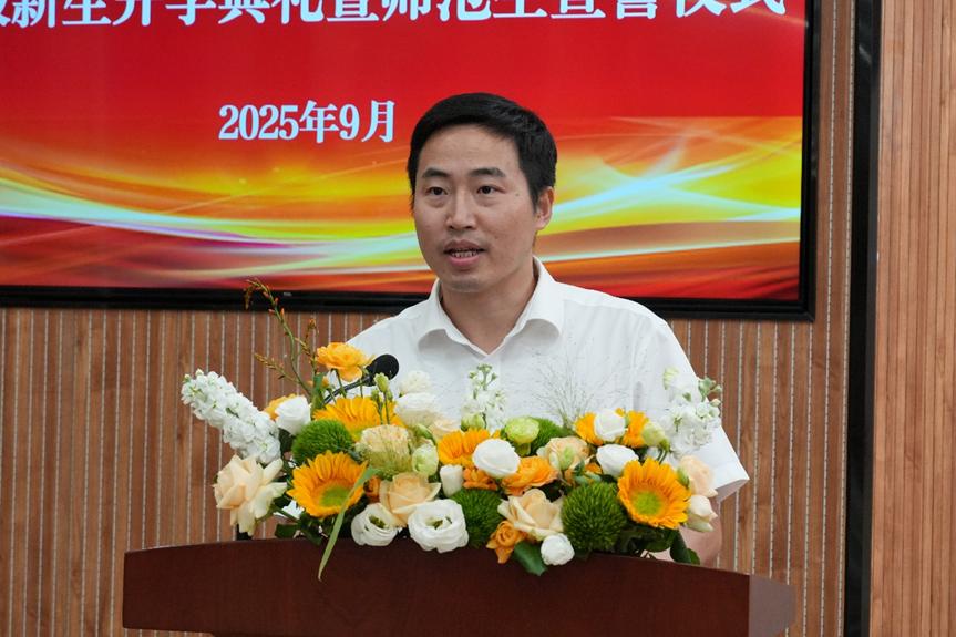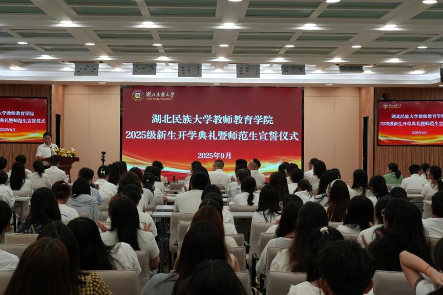 本网讯(通讯员 王清芳 罗熙晗)金秋送爽,丹桂飘香。9月16日晚,学院在德智楼远程教学观摩室隆重举行2025级新生开学典礼暨师范生宣誓仪式。行业导师代表、学院领导班子、各科室负责人、各基层教学组织负责人、教师代表、2025级本(预)科生班主任以及2025级本(预)科生及研究生代表齐聚一堂,共同开启新征程。开学典礼由学院党总支书记宁华宗主持。