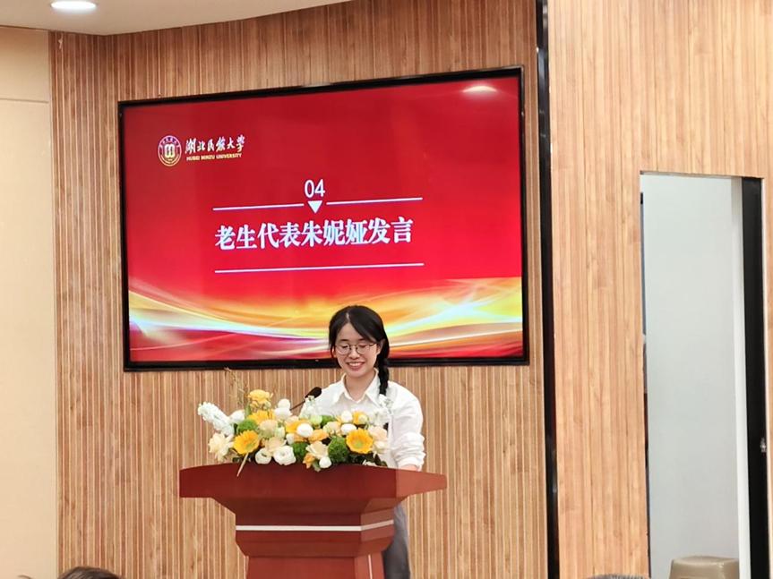 2024级小学教育专业学生朱妮娅作为老生代表发言,她结合自身参与创新创业大赛并获国家级立项的经历,鼓励新生勇敢探索,以“到中流击水,浪遏飞舟”的信念深耕当下,书写属于自己的青春故事。