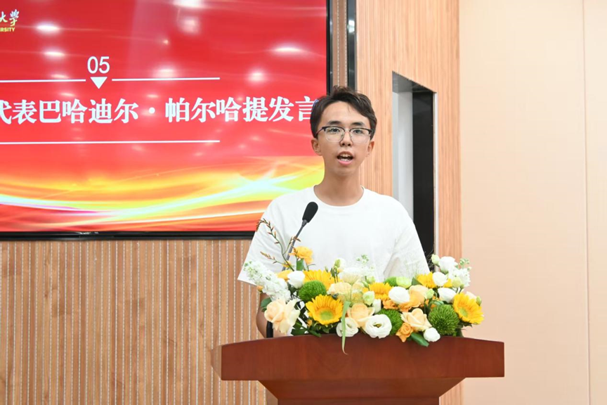 2025级预科生代表,来自新疆库尔勒的巴哈迪尔·帕尔哈提将预科比作“衔接过去与未来的彩虹”,保持求知欲,学方法、拓视野、培思辨,学会团结包容,在不断进取中理解大学“自由”的真谛,以自律与规划做“心灵自由的追梦人”。