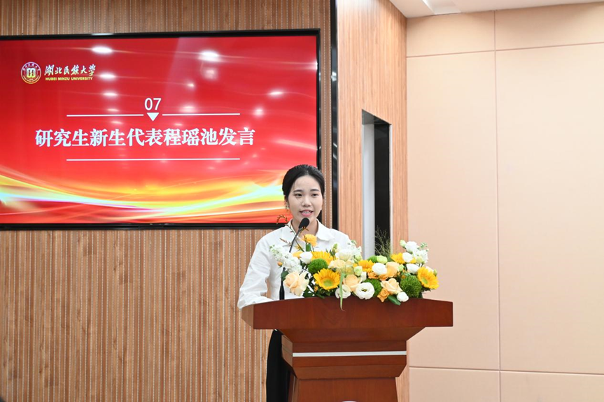 2025级教育管理专业研究生新生代表程瑶池勉励同学们,将个人理想融入国家教育事业,通过深耕理论知识、锤炼专业素养、积极投身实践,不断提升解决实际问题的能力。同时,她也寄语本科生和预科生,鼓励他们夯实学业基础、主动参与实践,为未来教育事业的发展贡献青春力量。
