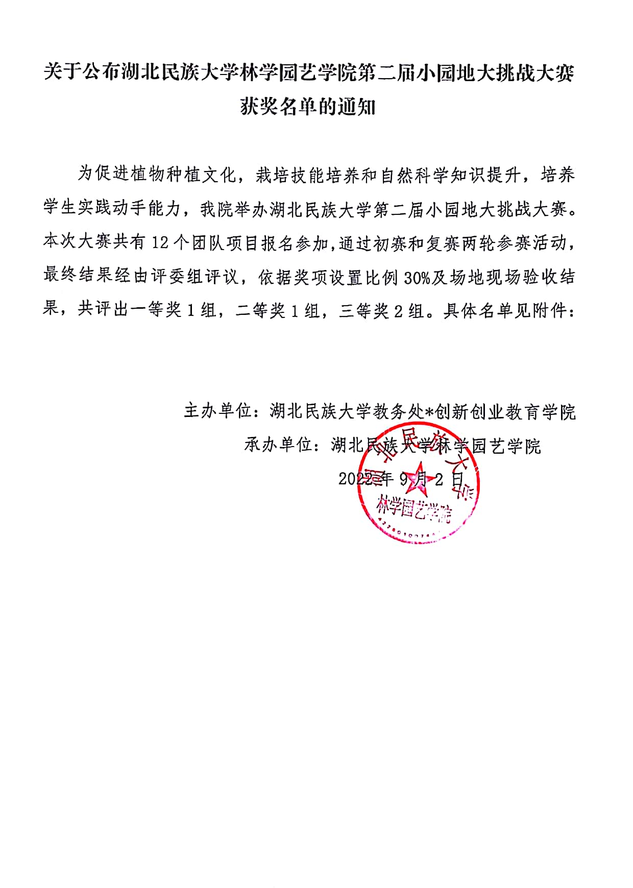 关于公布雷竞技raybet登录入口林学园艺学院第二届小园地大挑战大赛获奖名单的通知